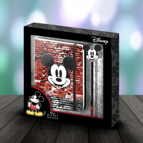 Ce set Mickey Disney conjugue l'éclat ludique et l'élégance fonctionnelle... Le carnet à sequins réversibles dévoile une image emblématique de Mickey Mouse avec une simple caresse de la main, invitant à l'interaction et à la créativité. Avec un stylo assorti, noir et raffiné, orné de la tête de Mickey, cet ensemble de papeterie est une ode à la nostalgie et à l'innovation. Conçu pour les fans de Disney de tous âges, il sert à la fois de journal intime, de bloc-notes inspirant ou de compagnon de voyage pour enregistrer des souvenirs magiques.