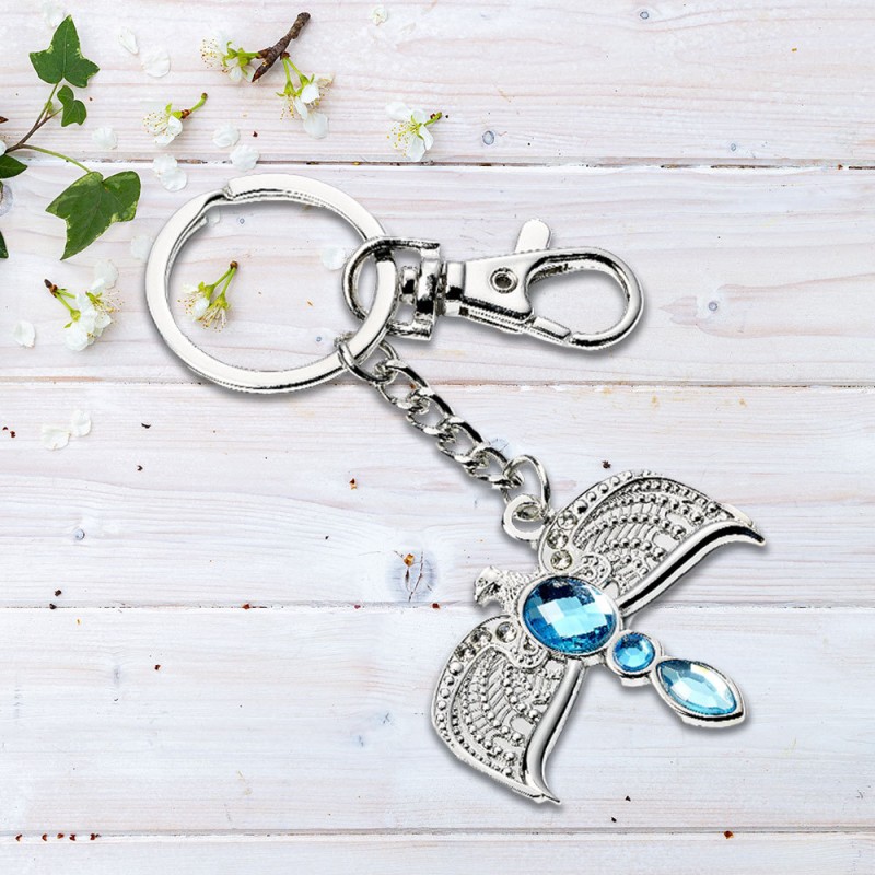 Un porte-clés Harry Potter stylé, élégant et brillant.Sublimez votre trousseau de clés ou votre sac avec ce porte-clés métallique Harry Potter unique combinant Fumseck le Phénix et le Diadème de Rowena Serdaigle. Inspiré de deux éléments emblématiques de l’univers de Poudlard, ce bijou est orné de pierres bleues étincelantes, symbolisant la sagesse et la résurrection. Avec son mini mousqueton et son anneau robuste, ce porte-clés élégant est à la fois un objet pratique et une pièce de collection raffinée pour les fans de la saga magique...
