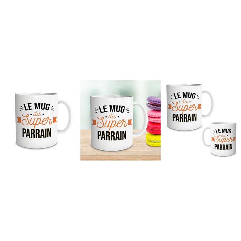 - Inscription de chaque côté : « Le mug du super parrain ».
