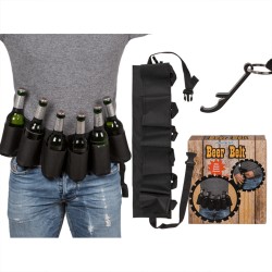 Adoptez ce gadget rigolo qui va faire parler de lui ! En effet, ne soyez jamais à court de boissons avec cette ceinture à bières originale avec décapsuleur métallique intégré… Les amateurs de bières et de gadgets insolites en tout genre vont l’adorer…