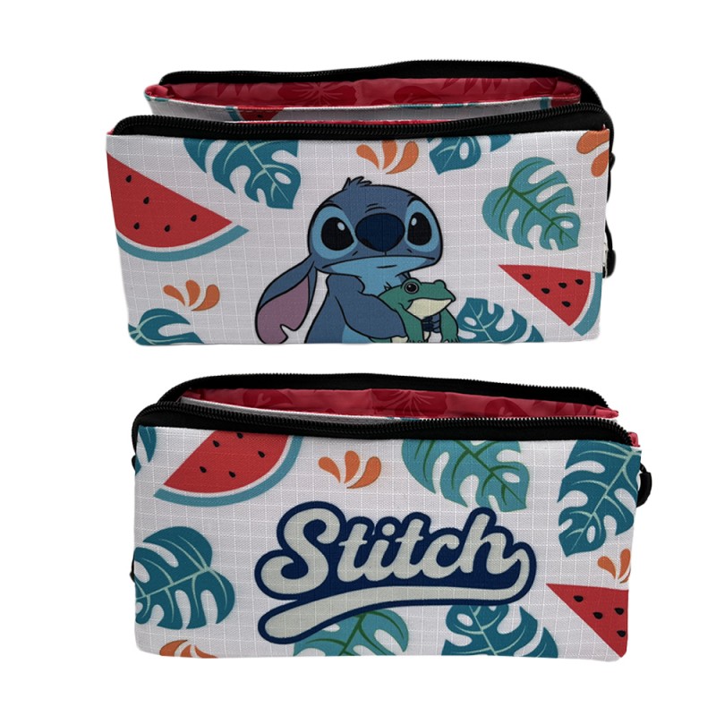 - Trousse Stitch & grenouille Disney à triple compartiment - pastèque et feuilles.