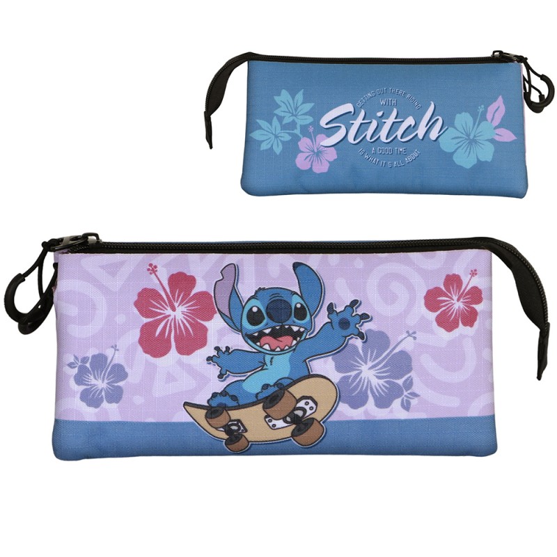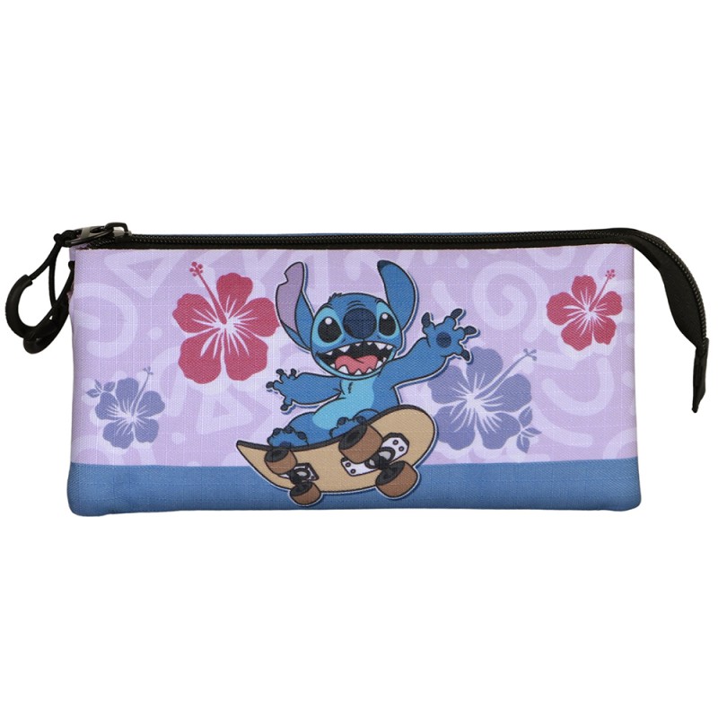 - Trousse Stitch Disney skate flower à triple compartiment.