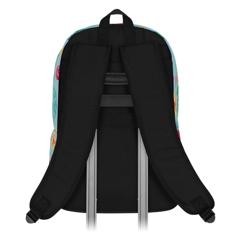 Ce sac à dos Stitch est plus qu’un simple accessoire, c’est un véritable compagnon de style et de fonctionnalité. La doublure intérieure imprimée de motifs tropicaux ajoute une finition originale qui fait toute la différence. L’organisation est facilitée par la poche intérieure dédiée aux appareils électroniques, ce qui est parfait pour protéger un ordinateur portable ou une tablette. Les bretelles ajustables et rembourrées permettent de transporter vos affaires en tout confort, même lorsqu’il est bien rempli. En plus, sa sangle dorsale adaptable au chariot en fait un choix malin pour les voyages. Ce sac à dos n’est pas seulement pratique : il met aussi en avant toute l’énergie positive de Stitch et sa passion musicale...