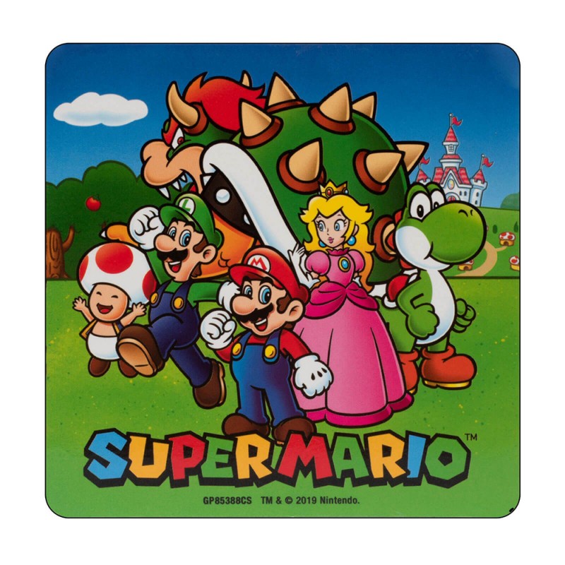 - Pack Super Mario personnages Nintendo avec carnet de notes, tasse, sous-verre et porte-clés.