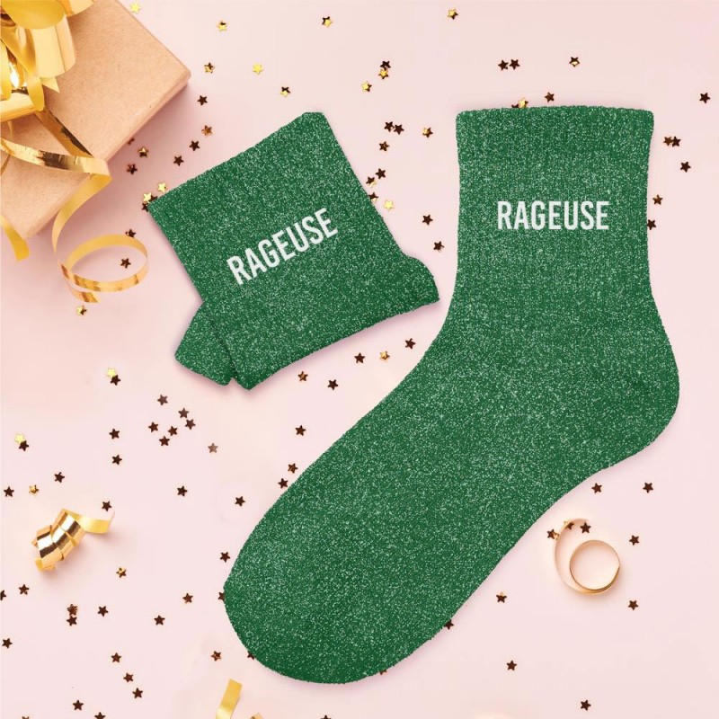 Chaque paire de chaussettes est soigneusement conçue avec une matière de qualité qui assure à la fois douceur, résistance et élasticité. Grâce à leur finition pailletée, ces chaussettes captent la lumière et subliment votre tenue, que ce soit pour une journée cocooning ou une sortie entre amies. L'inscription fantaisie sur chaque modèle apporte une touche d'humour et de personnalité, rendant chaque paire unique et ludique. Ces chaussettes sont disponibles en plusieurs coloris éclatants, du bleu électrique au rose tendre, en passant par le violet intense ou le vert profond. Avec plusieurs coloris pétillants et des mots évocateurs comme "Fêtarde", "Râleuse", "Géniale" ou encore "Merveilleuse", elles reflètent votre personnalité en un clin d'œil.