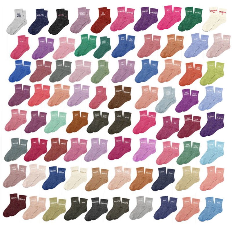 - Chaussettes paillettes colorées mot fantaisie.