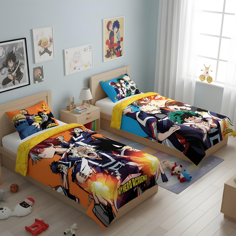 Envie d’une décoration geek pour votre chambre ? Cette parure de lit My Hero Academia saura ravir les fans de ce manga ! En deux déclinaisons possibles, vous aurez le choix de la couleur pour qu'elle s’accorde parfaitement à votre chambre. De plus, cette literie My Hero Academia apportera une touche fun et nipponne !